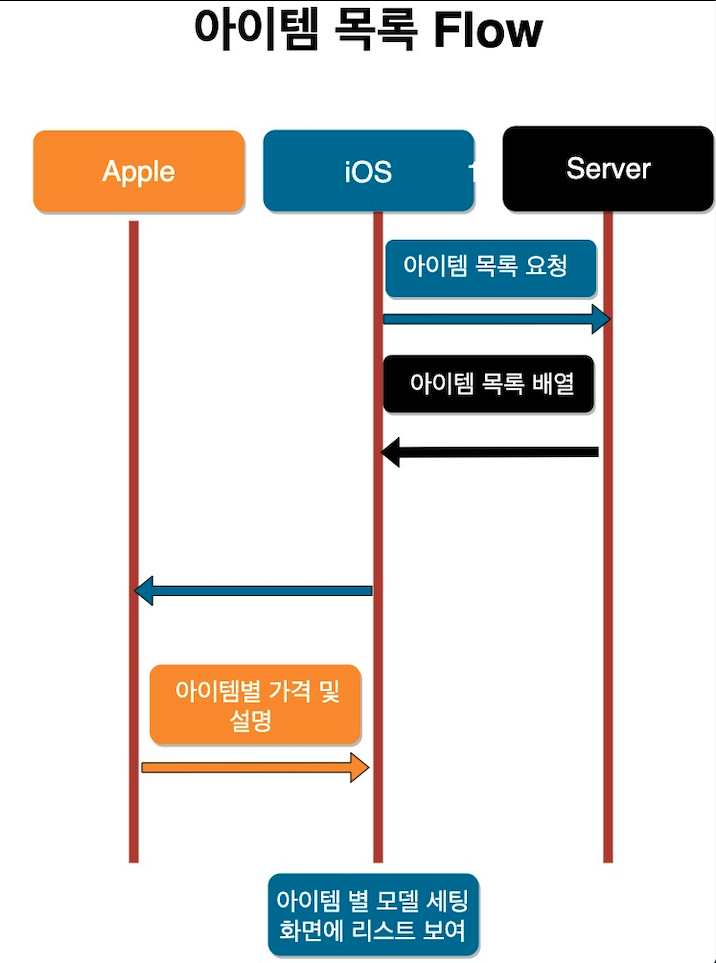 - 아이템 목록(id와 설명) 을 받아오면 id를 배열로 StoreKit 을 통해서 아이템의 가격과 정보들을 다시 받는다.