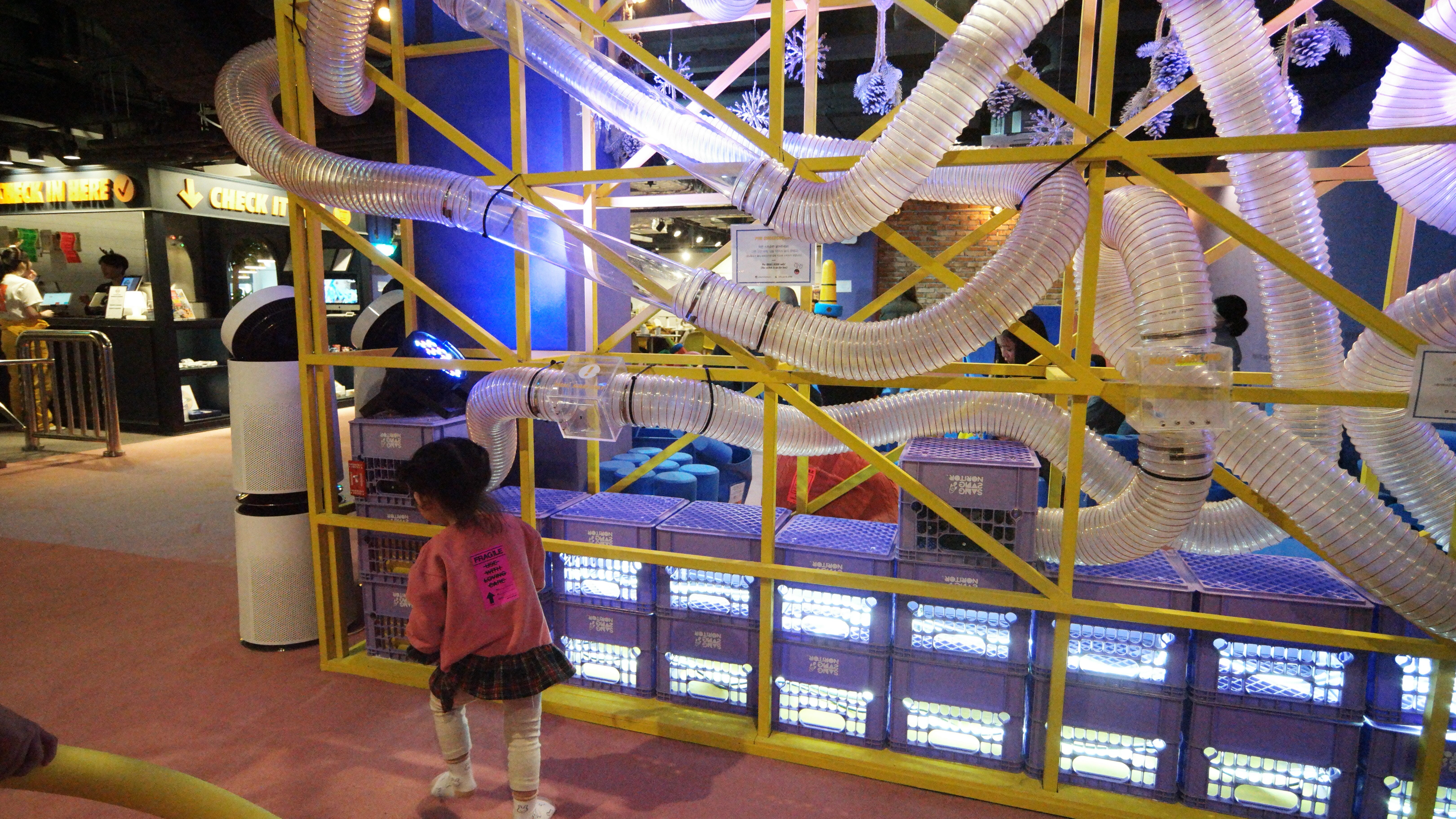 저 속에 보자기나 손수건을 넣으면 통로의 바람 때문에 슝슝 움직이다가 나오는 놀이 공간인데..
