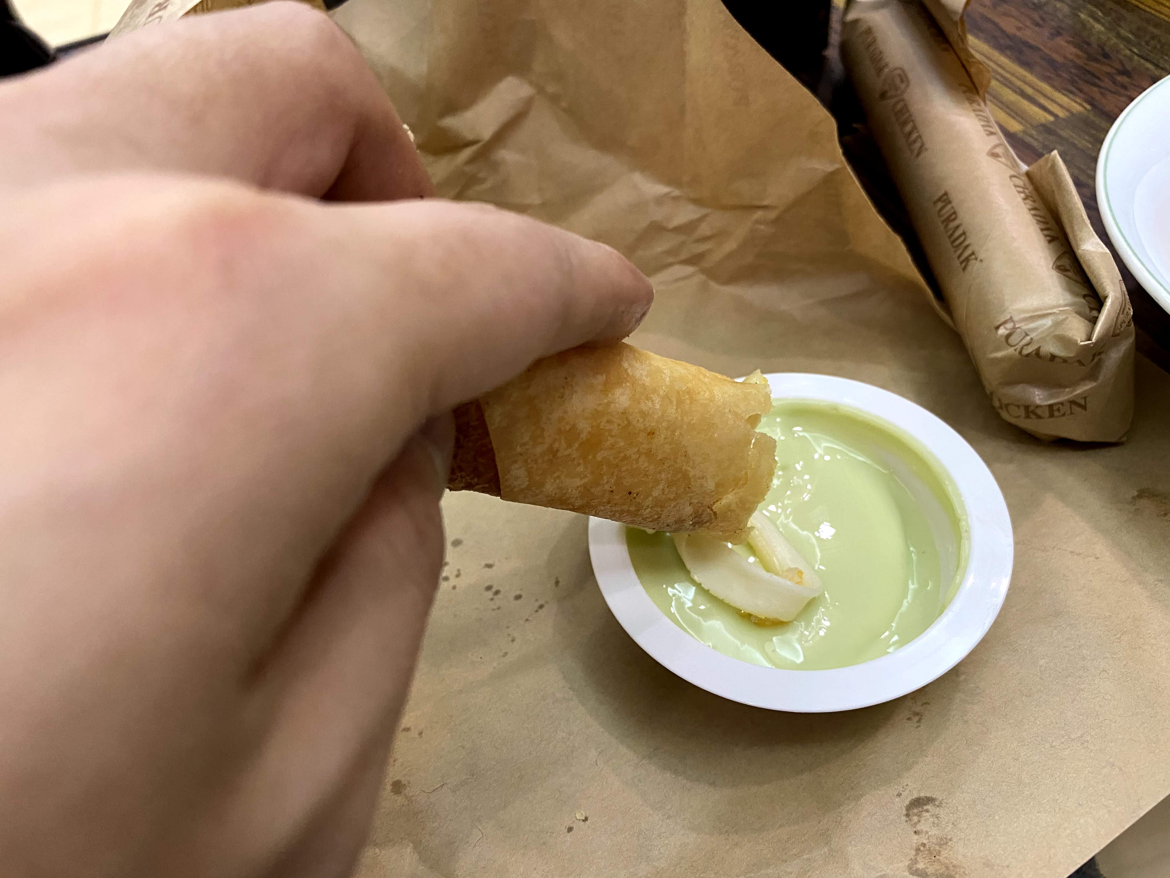 고추 마요 소스에 찍어 먹어 봤더니 맛있었다.