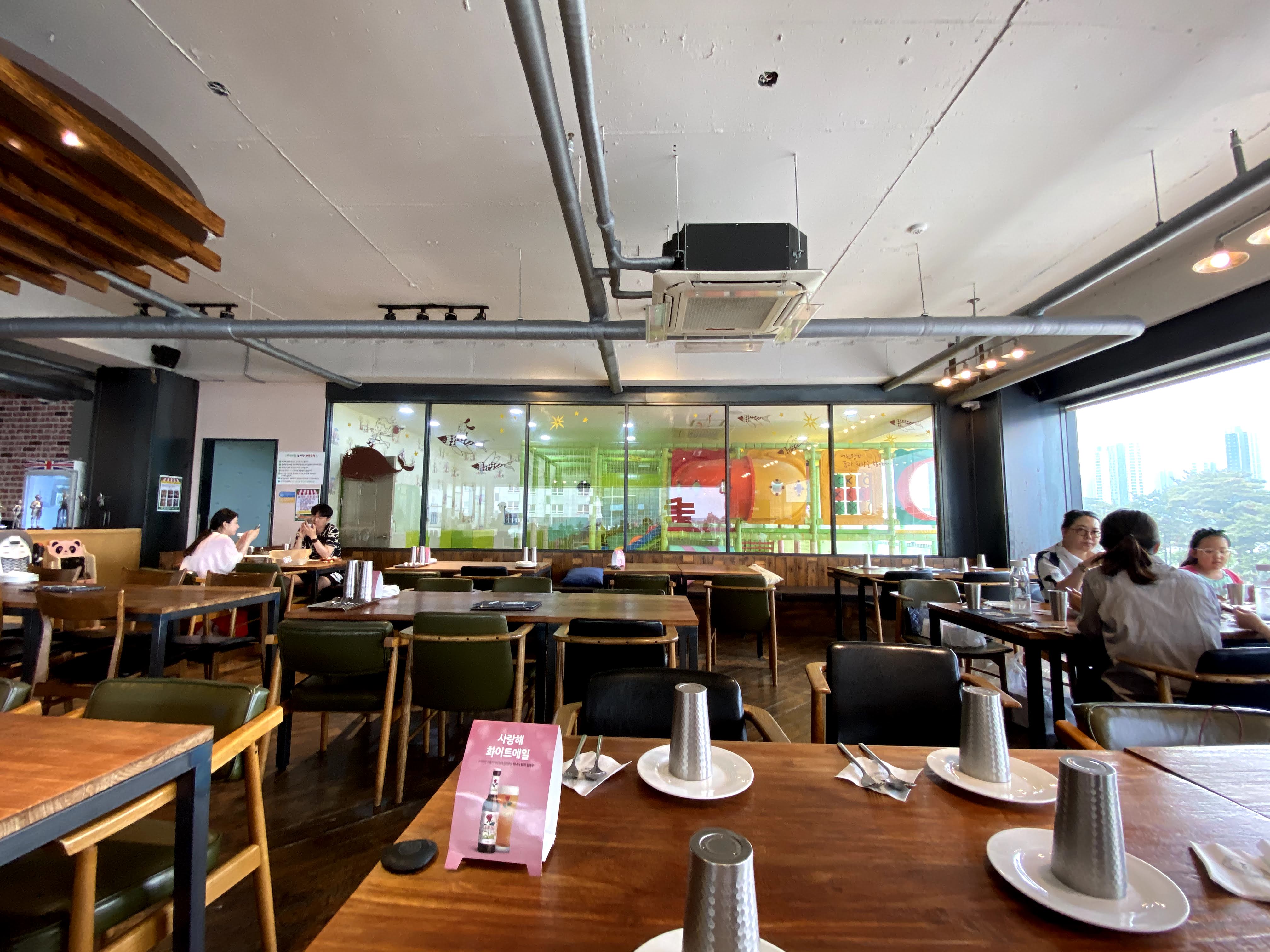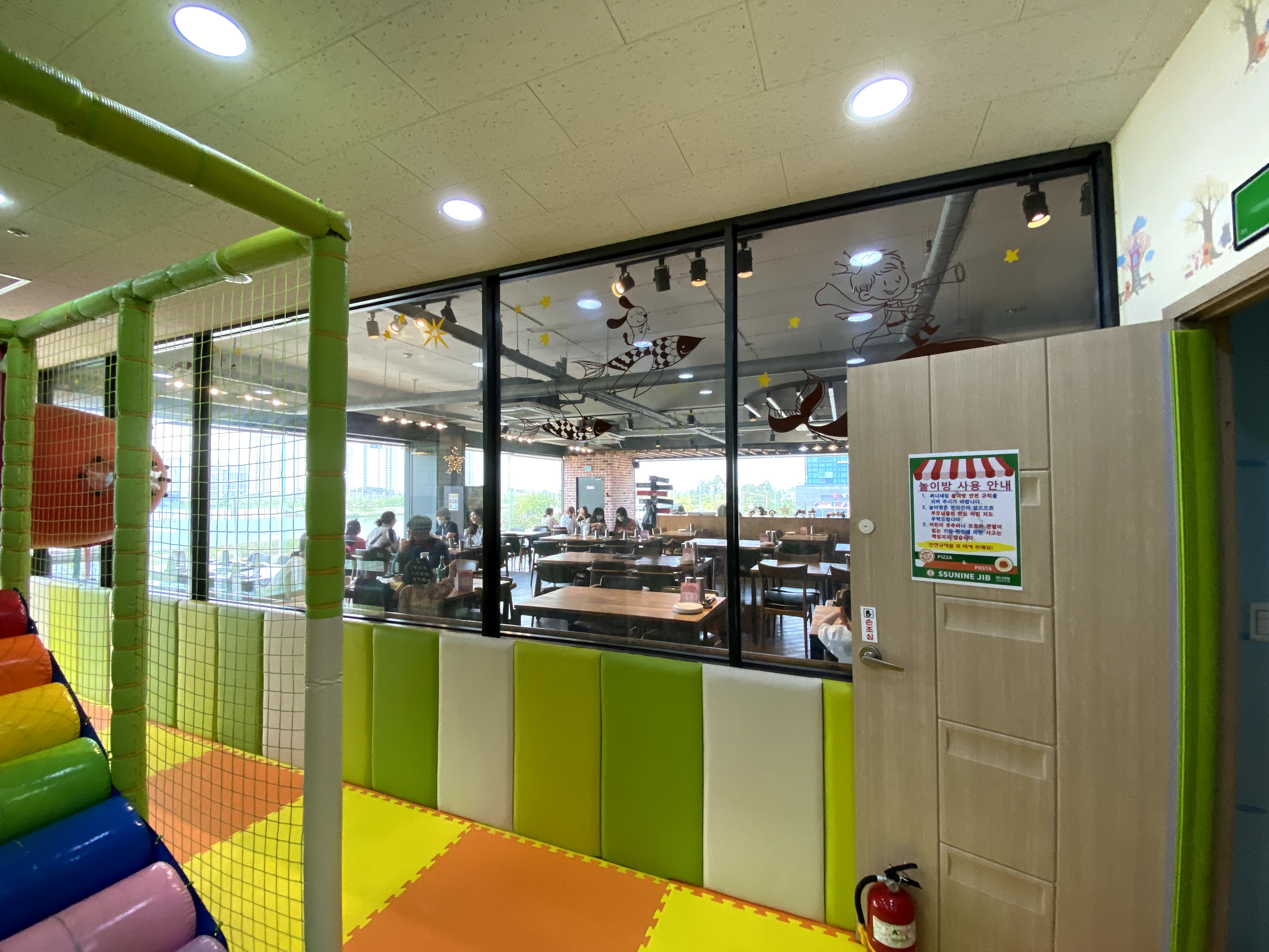 놀이방 안에서도 식당 안이 다 보이고.. 식당 안에서도 놀이방이 다 보이는 구조라서 아이만 놀게 해도 안심이 되었다.