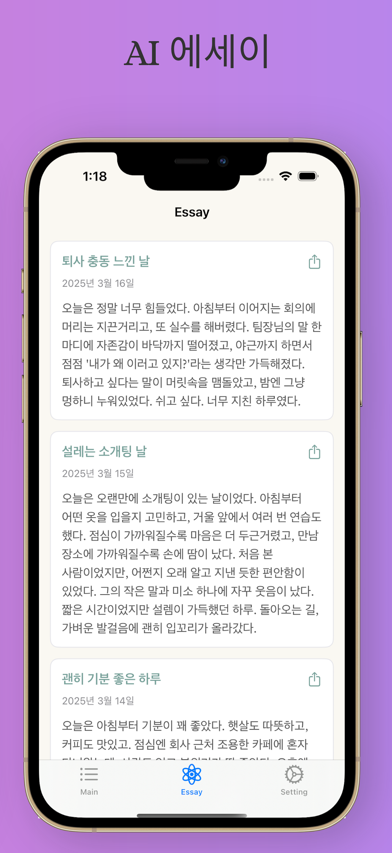 하루를 돌아보고 스스로를 이해하는 작은 ‘마음 에세이’가 완성됩니다.