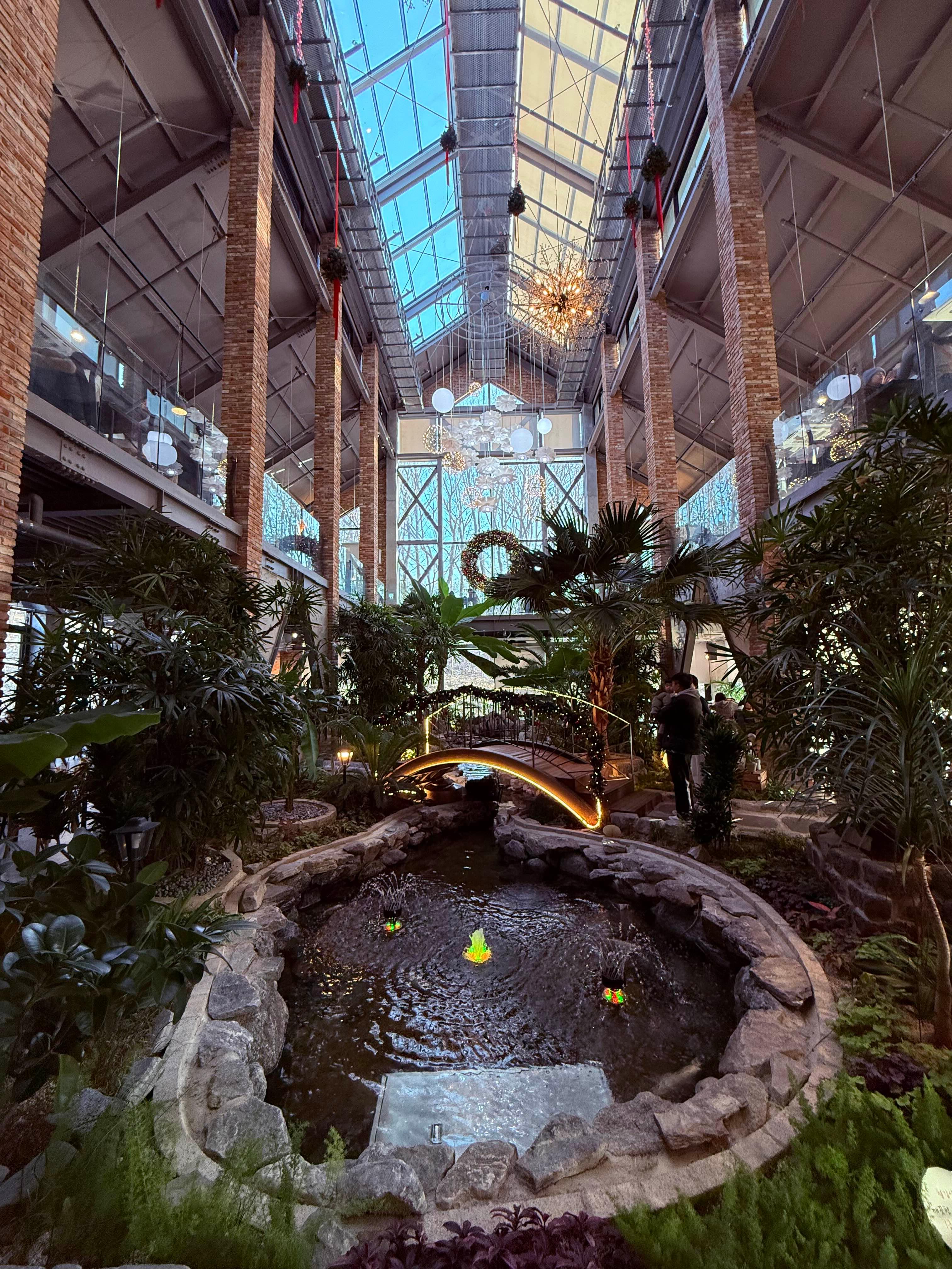 • 실내 연못 + 식물 + 다리
